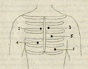 Рисунок 1.1- Точки аускультации сердца