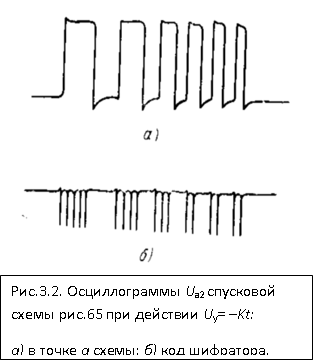 где n>m — целые числа. Закон изменения числа импульсов в каждой кодовой группе (рис.3.2,б) обеспечивается пилообразным напряжением фантастрона и величиной Eсм на вариконде спусковой схемы (рис.3.1), изменяемой потенциометром rп1.