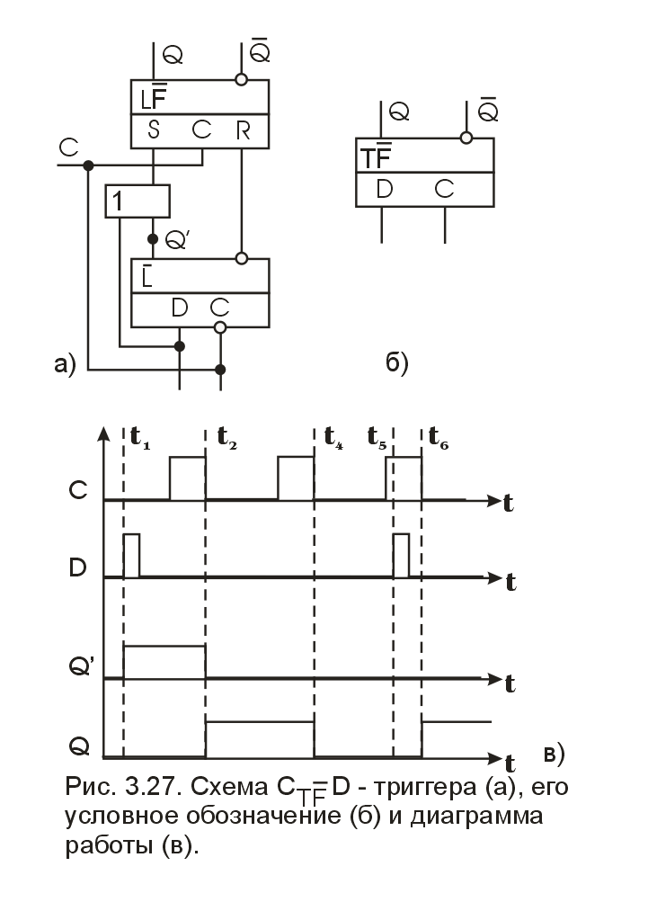 обозначение (б). в) Диаграмма работы C>F>D триггера