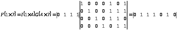 При виникненні помилки в першому розряді повідомлення воно матиме вигляд 1111010, здійснимо перевірку, для чого використаємо перевірочну матрицю