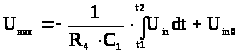 Схему інтегратора отримуємо, включивши в ланцюг зворотного зв'язку інвертуючого підсилювача замість резистора конденсатор. В цьому інтеграторі подаючи на вхід напругу додатньої полярності конденсатор починає заряджатися і напруга на виході дорівнює: