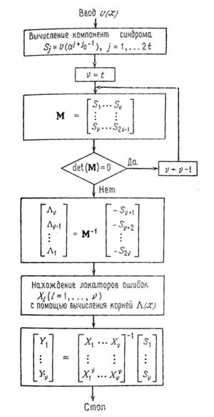 У силу визначення синдрому ця система рівнянь повинна мати хоча б одне рішення. Це рішення єдине. Наше завдання полягає в обчисленні невідомих по заданих компонентах синдрому, тобто в рішенні системи нелінійних рівнянь. Описуваний метод рішення таких систем підходить для довільного поля.