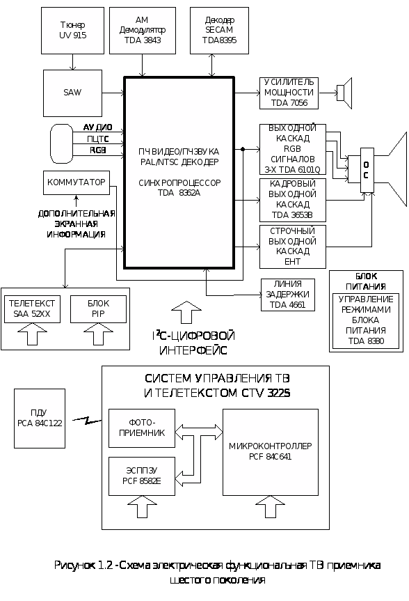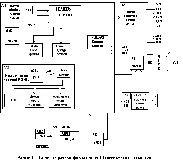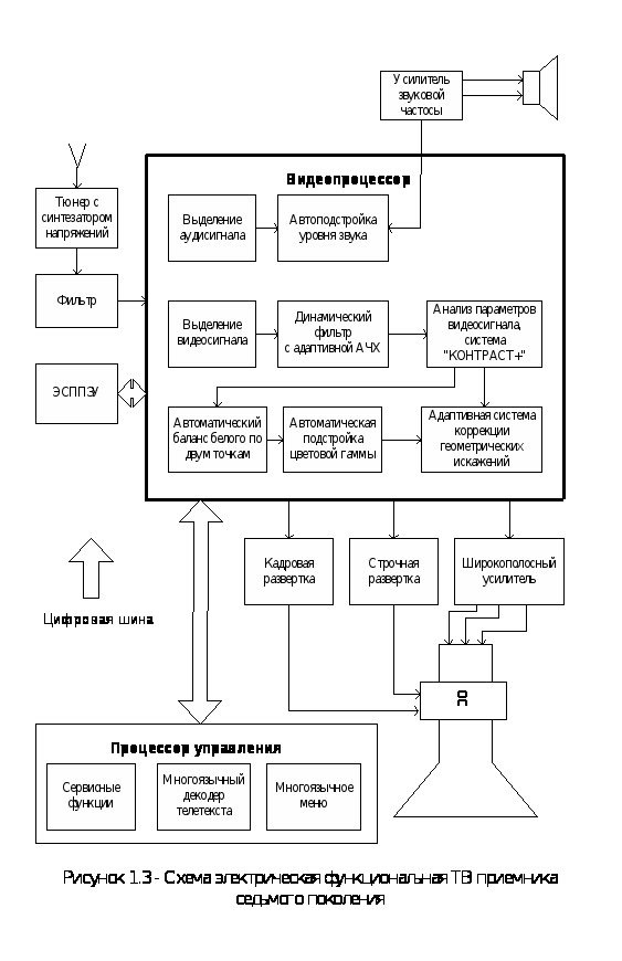 Далее рассмотрим функциональную схему телевизионного приемника пятого поколения, которая представлена на рисунке 1.1.