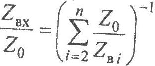 При параллельном разветвлении линий передачи (рис. 1 б) справедливы соотношения (1.1)- (1.6), записанные для проводимостей, т.е. входная проводимость делителя: