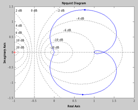 Не охватывает точку (-j;0), значит по критерию Найквиста замкнутая система устойчива. Годограф замкнутой системы проходит дальше от точки (-j;0), чем годограф разомкнутой системы, значит замкнутая система более устойчива.