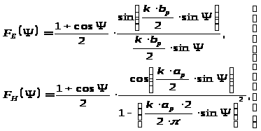Диаграмму направленности небольшого рупора можно рассчитать при помощи следующих приближенных соотношений