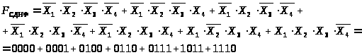 Находим МДНФ (минимальную дизъюнктивную нормальную форму). Для этого с помощью операции склеивания из СДНФ сначала получаем сокращенную форму: