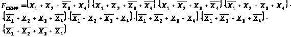Чтобы получить совершенную конъюнктивную нормальную форму (СКНФ), нужно записать конъюнкцию наборов аргументов, при которых значение функции равно 0. Наборы представляют собой дизъюнкции аргументов, причем, если значение аргумента равно 1, берется его инверсия: