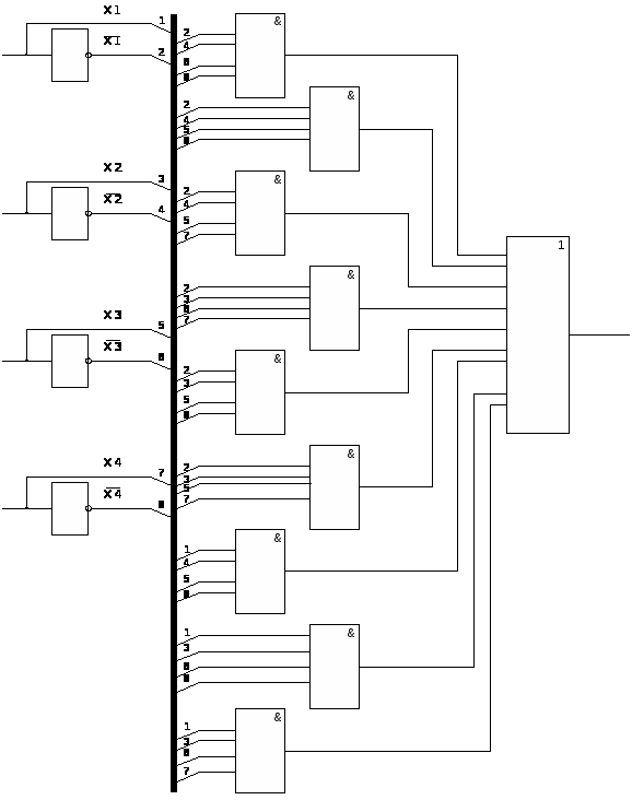 Составляем схему полученной СДНФ с помощью базисных элементов И, ИЛИ, НЕ:
