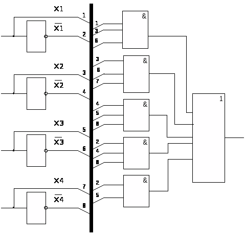 F=(1+1+0+*)(*+1+0+1)(0+1+*+1)(*+0+1+0)(0+0+1+*)(0+1+1+*)
