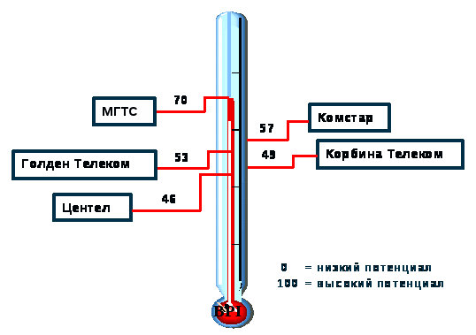 МГТС - один из крупнейших в Европе операторов местной проводной связи, структурное подразделение АФК "Система". Акционерами компании является 18 фирм. Сама компания имеет 10 дочерних подразделений , 5 из которых предоставляют телекоммуникационные услуги (МТУ, "ТЕЛМОС", "Комстар", "Голден Лайн", "Комкор"). В 2005 году абонентская база МГТС насчитывала порядка 4.2 млн. номеров. Доля компании на московском рынке фиксированной связи составляет около 80%. Уровень оснащения телефонными номерами МГТС столичных жителей высок: на 100 человек приходится 43 телефона. Это лучший показатель по России и полное соответствие международному уровню. Корпоративными клиентами компании являются Сбербанк РФ, Комитет образования Правительства Москвы и еще более 15 тыс. крупных и мелких фирм. К преимуществам МГТС относится наличие самой большой и разветвленной сеть в городе и огромная абонентская база, невысокие тарифы, традиционность в подходах.