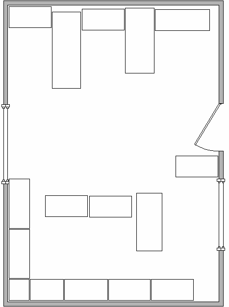 Метрологическая лаборатория должна располагаться либо в отдельном здании, либо находиться в отдельном помещении. План лаборатории изображен на рисунке 1. Расположения лаборатории в отдельном помещении (здании) связанно с необходимостью создания оптимальных условий для проведения поверки (калибровки) средств измерений (влажности, температуры и т.д.)