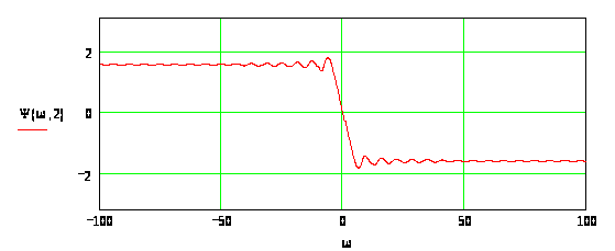 Как и ожидалось (на основании теоремы запаздывания), сдвиг сигнала вдоль оси времени не изменяет его АЧС, а лишь добавляет линейный член к ФЧС (с отрицательным наклоном при запаздывании сигнала и положительным - при опережении). Чем больше этот временной сдвиг, тем круче эта линейная добавка к ФЧС. Это подтверждается сравнением Рис. 8 и Рис. 1-10.