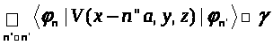 Теперь рассмотрим две такие цепочки атомов, расположенные на некотором расстоянии d друг от друга. Расстояние между атомами в первой цепочке по-прежнему a, во второй – b. Если пренебречь возможностью перескока электрона с одной цепочки на другую, то собственные волновые функции электронов будут иметь следующий вид: