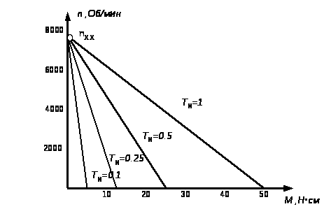 Теперь построим регулировочные характеристики, для этого воспользуемся уравнением (**). Составим следующую таблицу:
