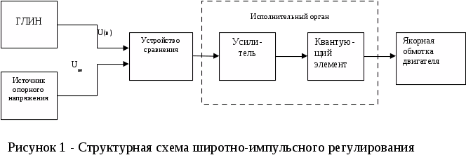 Структурную схему наиболее просто и часто встречающегося варианта широтно-импульсного регулирования работы двигателя можно увидеть на рис.1.