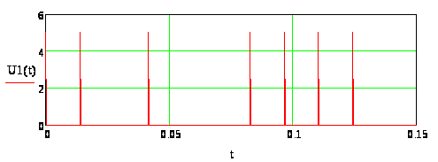 Як величину амплітуди цього коливання використати добуток десяткового еквіваленту кодів другого рядка на “амплітудну вагу” дискрети, як частоту ω = 2π/τ, а як величину часового зсуву Δt>i> = (і - 1) ∙τ, де і - номер символу, τ = 1/В - тривалість символу.