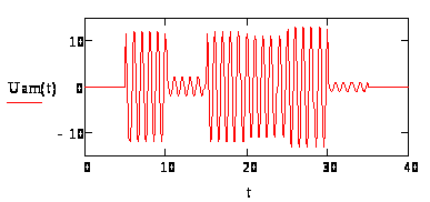 Із використанням засобів вбудованих функцій MathCAD отримати моделі цих радіосигналів у в часовій та частотній областях. Вивести їх на екран та занести у пояснювальну записку.