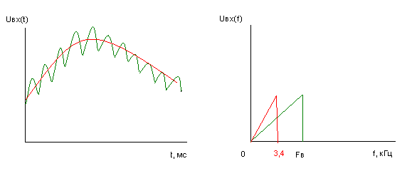 На выходе фильтра мы получаем сигнал с полосой частот (0–3,4) кГц