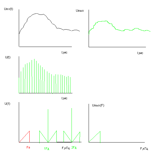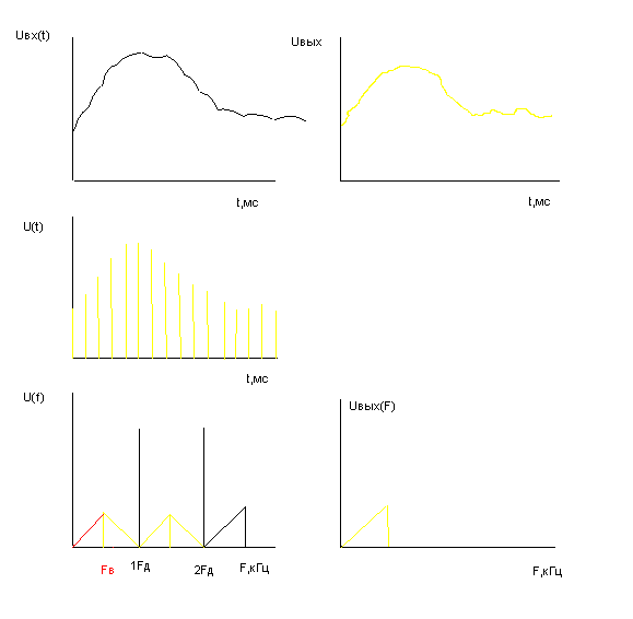 Выбор Fд>2Fв позволяет использовать простые ФНЧ на приеме для восстановления непрерывного сигнала из последовательности его дискретных отсчетов.