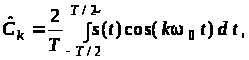 то вона може бути представлена рядом Фур’є у так званій тригонометричній формі в базисі ортогональних гармонічних функцій з кратними частотами: