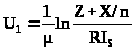 На второй логарифматор сигнал Х подается через инвертор. Поэтому выходное напряжение микросхемы DA2 будет определяться формулой