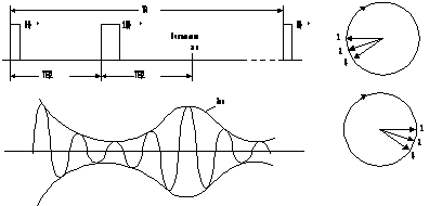 Наиболее простой является последовательность «насыщение – восстановление». При этом подают РЧ-импульсы, вызывающие поворот вектора М на 90о с периодом повторения TR (time repetition), близким к Т>1> (рис.2).