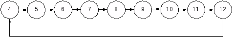 Данный счётчик является суммирующим, производя счёт из состояния 4 девять отсчётов. Составим линейный граф выходных состояний: