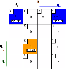 С помощью карт Карно производим минимизацию функций входов для каждого триггера: