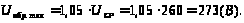 Номинальное и максимальное значения напряжения на входе стабилизатора при колебании сети на +10%: