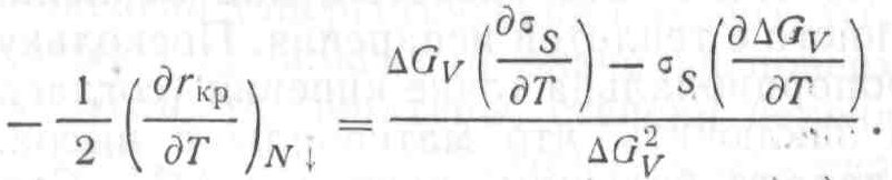 где r — радиус сферического зародыша, у>S> — поверхностная энергия, ДG>V> — изменение свободной энергии при конденсации, практически равное энергии испарения, р>пер>— давление перенасыщенного пара, р>равн> — равновесное давление пара, соответствующее температуре конденсации Т; N ↓ и N ↑— число молекул, движущихся к поверхности конденсации и испаряющихся с нее.