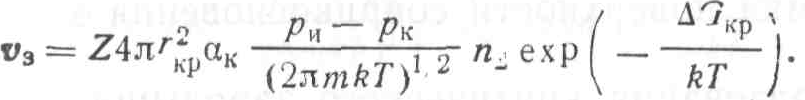 где S>п.кр>—площадь поверхности критического зародыша; щ — частота столкновений молекул с этой поверхностью; n>i> — число молекул на единице этой поверхности, т. е. равновесная поверхностная концентрация молекул.