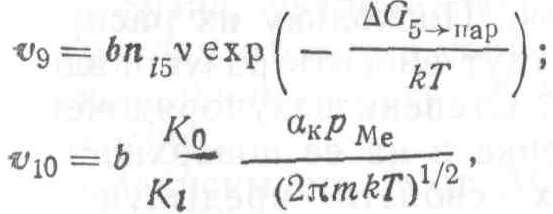 где п>i>>1>, п>i>>2>, п>i>>3>, п>i>>4 >— равновесные концентрации атомов соответствующего типа; р>Ме>—давление пара осаждаемого компонента; х>1>, х>2>,…, х>10 >— скорости движения атомов.
