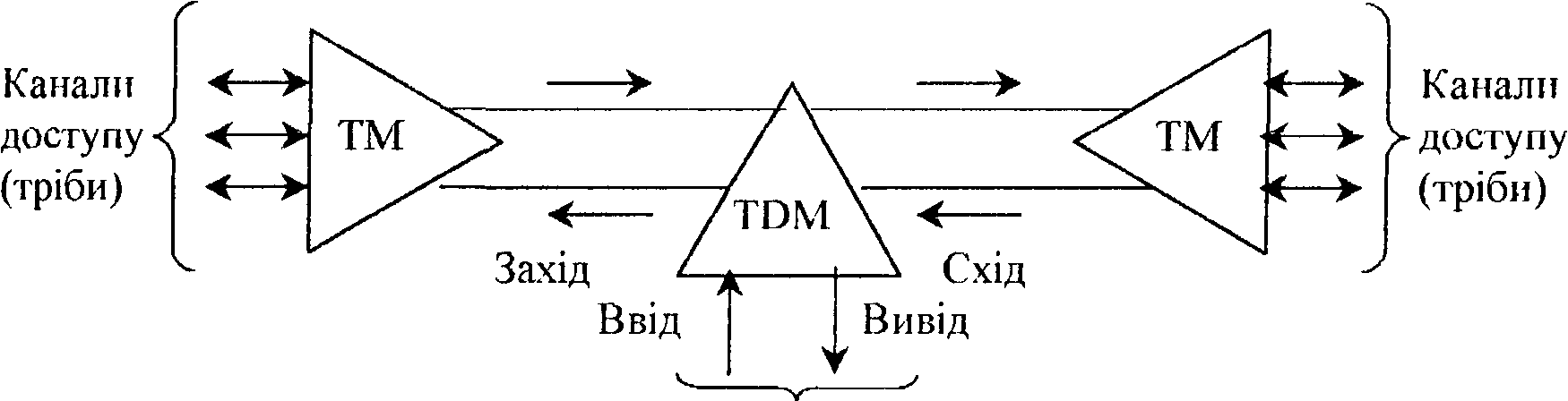 Рисунок 1.2 - Топологія «послідовний лінійний ланцюг», реалізований на ТМ й ТDМ
