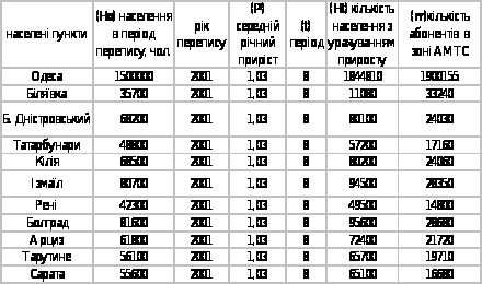 Використовуючи формули (1.1), (1.2) і (1.3) розрахуємо чисельність населення у всіх обраних пунктах.