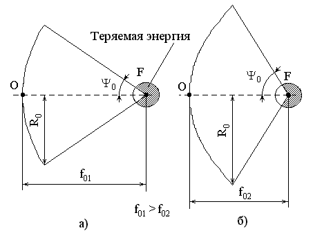 В зависимости от размещения облучателя относительно зеркала можно получить то или иное значение КНД. При определенном оптимальном отношении R>o>/f>o> КНД наибольший. Это объясняется тем, что количество теряемой энергии зависит от формы диаграммы направленности облучателя и от отношения R>o>/f>o>. При уменьшении отношения R>o>/f>o> от оптимального КНД уменьшается, так как увеличивается часть энергии, проходящей мимо зеркала. С другой стороны, увеличение этого отношения также приводит к уменьшению КНД в связи с более сильным отклонением закона распределения возбуждения от равномерного. Оптимальное значение R>o>/f>o> определяется по аппроксимированной нормированной ДН облучателя (аппроксимация функцией вида F()=cosn2(), где n определяет степень вытянутости ДН облучателя).