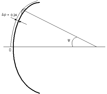 Пусть поверхность параболоида имеет некоторые неровности (выступы и углубления). Наибольшее отклонение от идеальной поверхности в направлении обозначим через Δ.