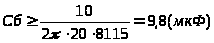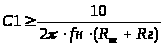 8. Определим емкости конденсаторов при выполнении которых значение коэффициента усиления по напряжению на нижней граничной частоте fн = 20 Гц: