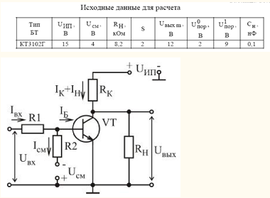 4. Определим значения тока коллектора и базы Iкн, Iбн, соответствующие режиму насыщения, а также значение тока базы Iбm при максимальном значении входного напряжения Uвхm.