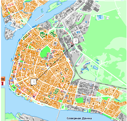 Фирма «НордСофт» ведёт свою основную деятельность в двух территориально распределённых офисах, в каждом из которых должна быть организована одна из частей единой ЛВС. Оба офиса территориально распределены в черте города (Рисунок 1), поэтому для организации единой сети требуется связать элементы ЛВС через сети связи, существующие в городе.