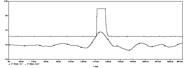 Таким образом, можно смоделировать условия прохождения сигнала через канал связи. Схема шумового воздействия представлена в приложении на рисунке А.3. Результаты расчета в OrCAD представлены на рисунках 8-9.
