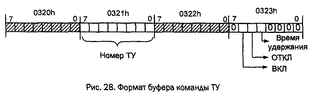 в байте кода команды ТУ сброшены неиспользуемые биты. Формат буфера регистра памяти команды ТУ приведен на рис.16.