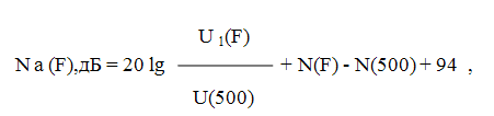 500 Гц, определяемое по частотной характеристике звукового давления; N(F) - то же для частоты F .