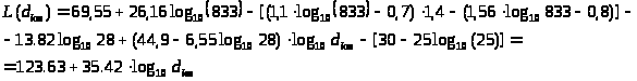 Таким образом, для нахождения отношения между радиусом соты и трафиком соте, необходимо найти выражения для максимальных потерь при распределении L>max>. Эмпирическая формула для потерь была определена МСЭС (ITU-R)