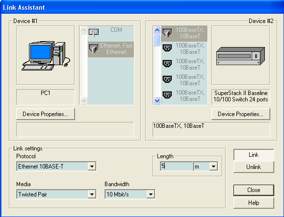 Підключаємо робочі станції до комутатора через порти 100/10 BaseT та Ethernet Fast Ethernet за допомогою скрученої пари довжиною 5 м.