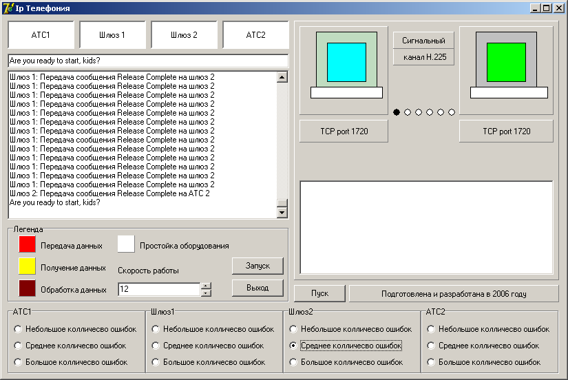 – приобретение навыков при работе с протоколом стандарта Н.323