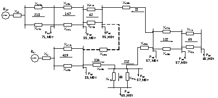 Схема замещения для расчёта минимального тока к.з. представлена на рисунке 7.3.1 с учётом вывода из схемы соответствующих линий.