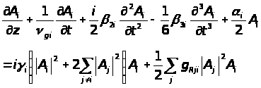 Четырехволновое смешивание - FWM. Природа нелинейного эффекта FWM связана с наличием слабой зависимости показателя преломления волокна от интенсивности распространяемого по нему света, в результате чего из двух волн с частотами н>i> и н>j> появляется две новые волны с частотами н>k> и н>l> причем н>i> + н>j> = н>k> + н>l> как того требует закон сохранения энергии. При попадании новых волн в спектральные области существующих каналов будут иметь место поперечные помехи между каналами. Влияние поперечных помех из-за FWM увеличивается с приближением хроматической дисперсии к нулю и максимально в окрестности точки нулевой дисперсии. Наиболее сильно подвержены влиянию FWM волокно с нулевой смещенной дисперсией DSF – длина волны нулевой дисперсии у этого волокна попадает в рабочую область усиления EDFA.
