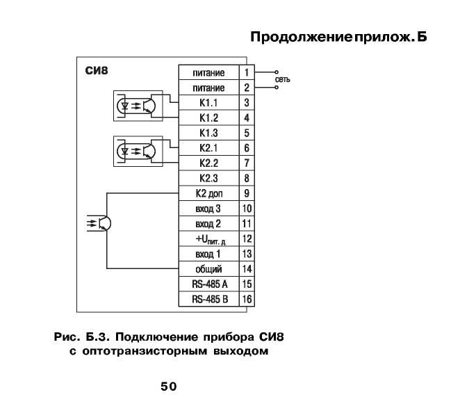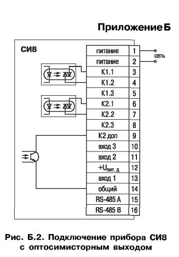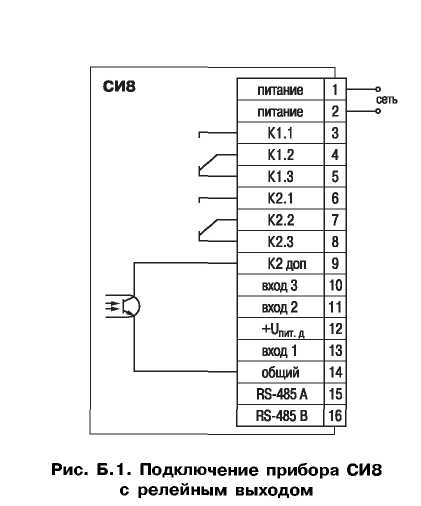 Прибор имеет два встроенных выходных устройства ключевого типа для включения-выключения внешнего технологического оборудования при достижении заданных установок.