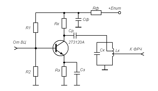Выбор остальных элементов можно осуществить, пользуясь типовыми схемами включения, поскольку во всех оставшихся цепях частоты совпадают с типовыми.